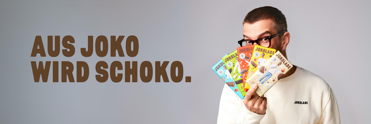 Wir haben unseren JOKOLADE Tafeln einen komplett neuen Look verpasst - und natürlich ist ab sofort kein anderer als Joko höchstpersönlich auf unseren Tafeln abgebildet! Keine Sorge: Unsere Tafeln bleiben genauso fair und lecker!